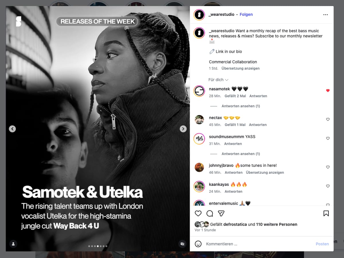 STUDIO, the Paris-based magazine focusing on cutting-edge bass music, premiered the single on their Deezer podcast, Youtube and Soundcloud and featured it in their weekly releases: "Up-and-coming producer Samotek teams up with London vocalist Utelka for ‘Way Back 4 U’, a high-stamina jungle anthem exploring the grit and emotional muscle required to mend broken connections."